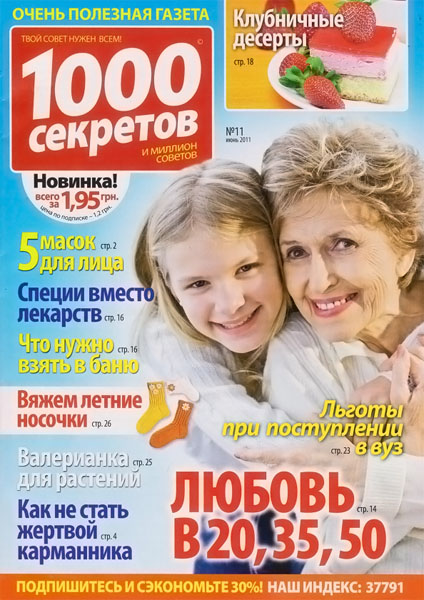 Народный журнал, который будет полезен каждому. Он содержит по несколько полос из каждой области человеческой жизни: воспитание детей, кулинария, здоровье, строительство и ремонт, сад и огород, умелые руки, дизайн, физическое развитие, психологические и юридические консультации.