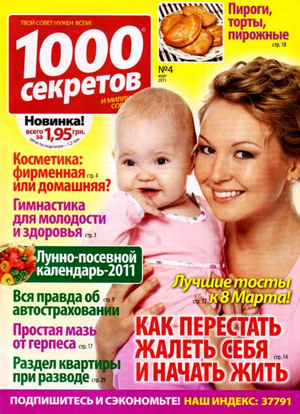 "1000 секретов" - народный журнал, который будет полезен каждому без исключения. Он содержит по несколько полос из каждой области человеческой жизни: воспитание детей, кулинария, здоровье, строительство и ремонт, сад и огород, умелые руки, дизайн, физическое развитие, психологические и юридические консультации.