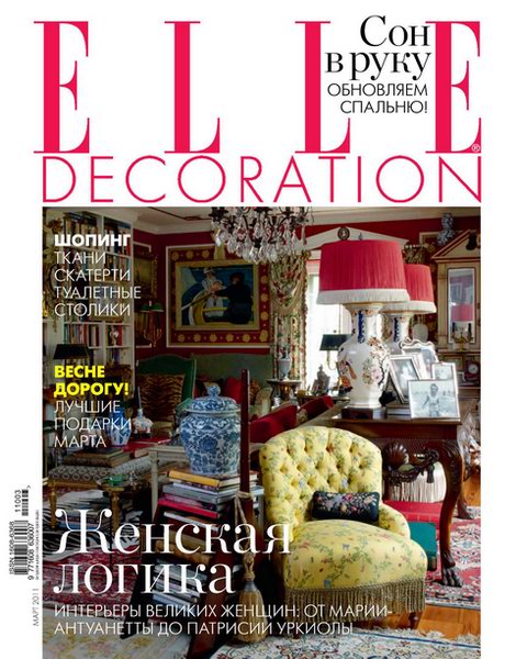 ELLE Decoration - самый красивый и полезный международный журнал о современном интерьере. ELLE Decoration является источником вдохновения для ведущих дизайнеров и декораторов мира. Для людей, задумывающихся о строительстве и обустройстве дома, он служит путеводителем в мире современных материалов и тенденций интерьерной моды. В каждом номере — архитектурные новости, выбор лучших дизайн-объектов и знакомство с их создателями, практические советы и подробные репортажи о проектах признанных мастеров.