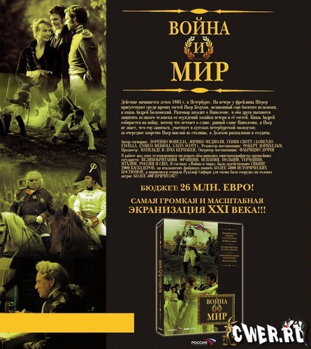 Действие начинается летом 1805 года в Петербурге. На вечере у фрейлины Шерер присутствуют среди прочих гостей Пьер Безухов, незаконный сын богатого вельможи, и князь Андреи Болконский. Разговор заходит о Наполеоне, и оба друга пытаются защитить великого человека от осуждений хозяйки вечера и ее гостей. Князь Андрей собирается на войну, потому что мечтает о славе, равной славе Наполеона, а Пьер не знает, чем ему заняться. За очередное озорство Пьер выслан из столицы, а Долохов разжалован в солдаты.